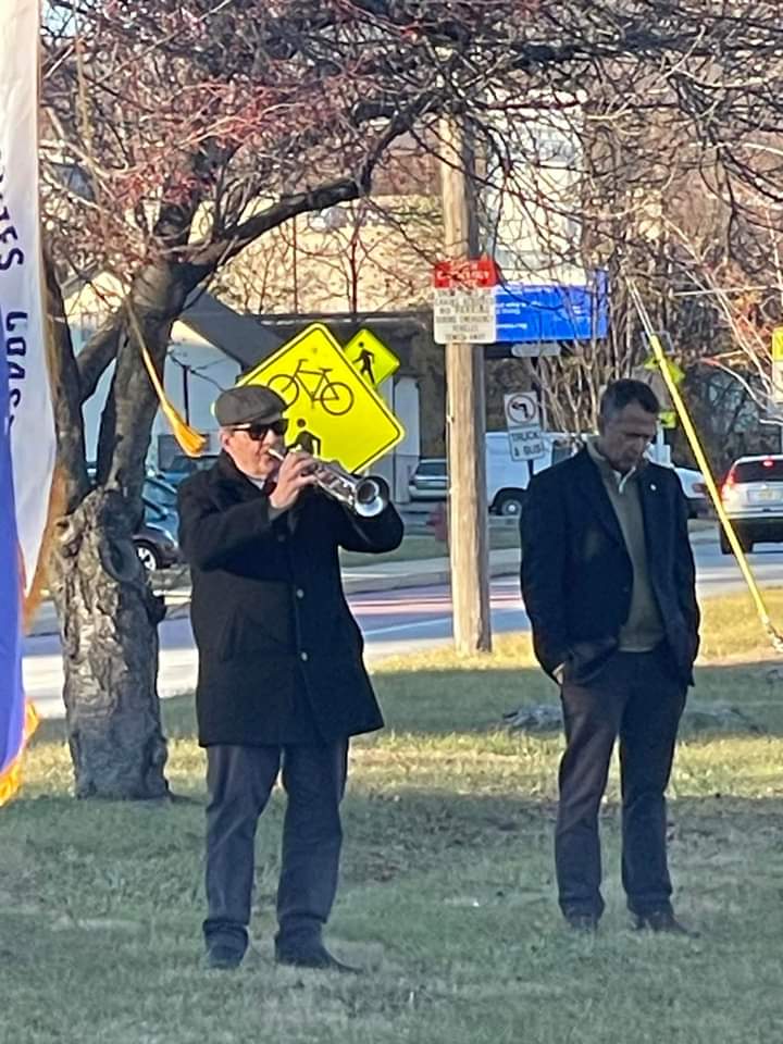 | The dedication ceremony was organized by Kevin "Spike" Long, UVO Commander, along with Dave Matsinko who played Taps. |